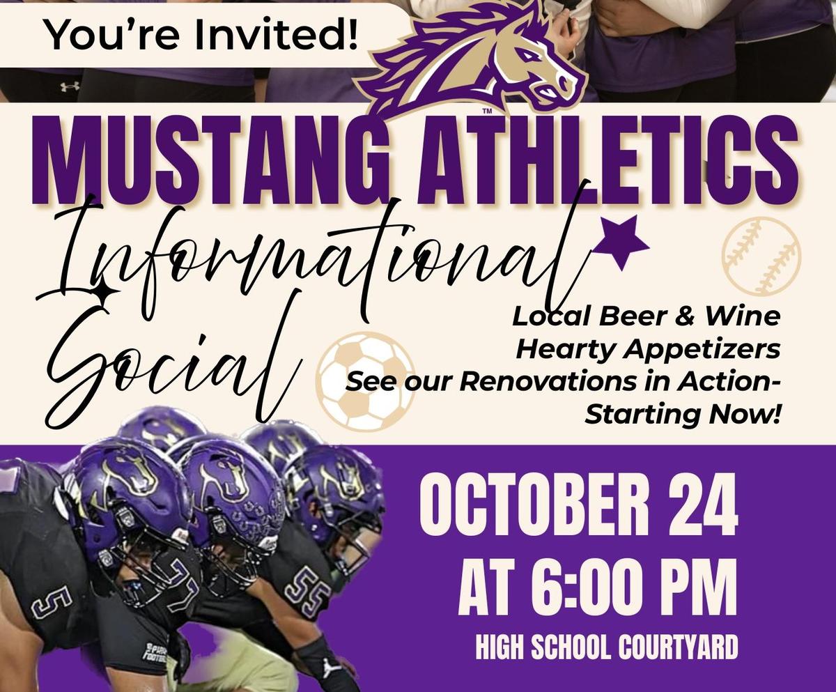 Mustang Athletics Informational Social Join us at our Mustang Athletics Informational Social on October 24 at 6pm in the Highschool Courtyard!